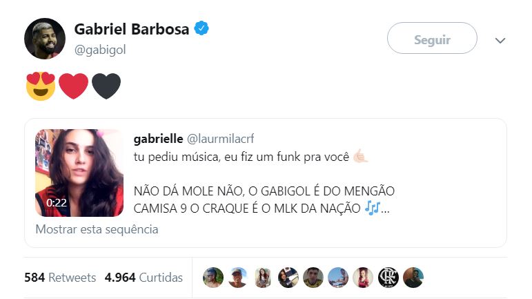 No último domingo (24 de março), após marcar no triunfo por 3 a 2 sobre o Fluminense, o camisa 9 da Gávea foi às redes sociais para interagir com alguns rubro-negros. E em uma das brincadeiras, o jogador pediu uma música especial. O pedido por sua vez, não demorou a ser atendido.