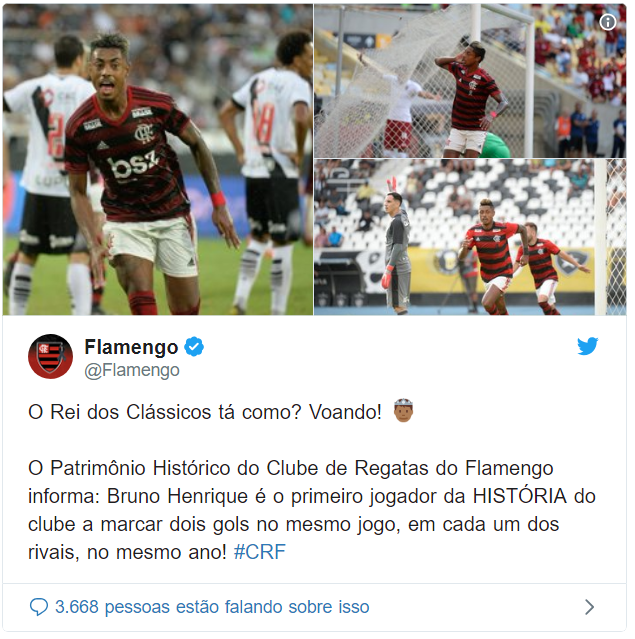 Isso porque o camisa 27 se tornou o Rei dos Clássicos carioca e acabou balançando as redes contra o Botafogo, Fluminense e Vasco duas vezes no mesmo jogo, fato histórico conforme divulgado pelo clube rubro-negro.