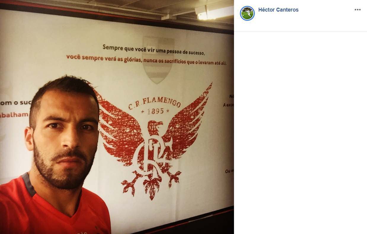 Através de seu perfil oficial no Facebook, o meio-campista Héctor Canteros publicou uma foto durante um de seus treinamentos, enquanto pertencia ao Flamengo (veja a publicação abaixo). Devido ao uniforme de treino, juntamente com a parede personalizada, é possível afirmar que a foto foi registrada no Ninho do Urubu.