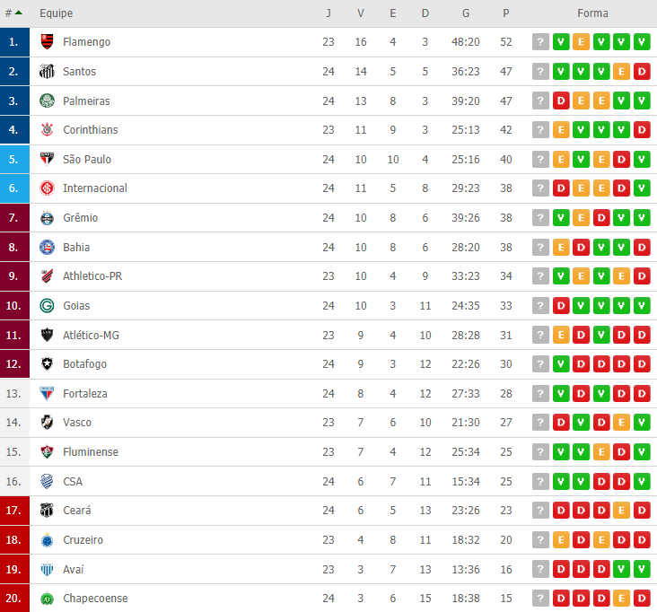 Confira a tabela de classificação completa abaixo: