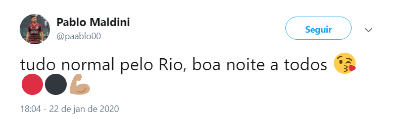 Através de seu perfil oficial no Twitter, o lateral publicou a seguinte mensagem: “tudo normal pelo Rio, boa noite a todos”.