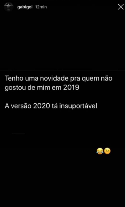 O atacante Gabigol provocou seus críticos através das redes sociais. Em uma publicação no Instagram, o atacante afirmou que em 2020 sua versão está “insuportável”. Veja um print da publicação abaixo.