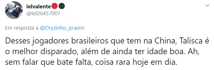 — Comigo o Talisca faz quatro posições. Com os outros não sei. Fico muito feliz pela partida do Talisca. Está se adaptando às exigências táticas e vai ser mais um que daqui a alguns anos vai render uns milhões.