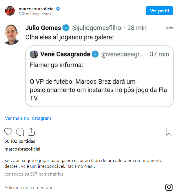 Frente a todas as explicações já dadas inúmeras vezes sobre o quanto o preconceito é errado e precisa ser erradicado, houveram jornalistas relativizando o ocorrido e ironizando as medidas tomadas pelo Flamengo em suporte de seu jogador.