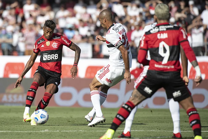 A goleada do Flamengo sobre o São Paulo, por 4 a 0 no Morumbi, começou a ser construída nos primeiros minutos da partida deste domingo. Afinal, aos três, Gabigol e Bruno Henrique já haviam colocado o placar em 2 a 0 para o Rubro-Negro. Segundo o camisa 27, a pressão inicial foi um pedido do técnico Renato Gaúcho antes da partida.