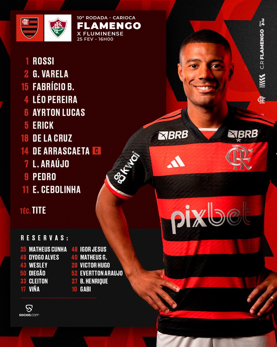 Saiu! Veja a escalação do Flamengo para o jogo contra o Fluminense