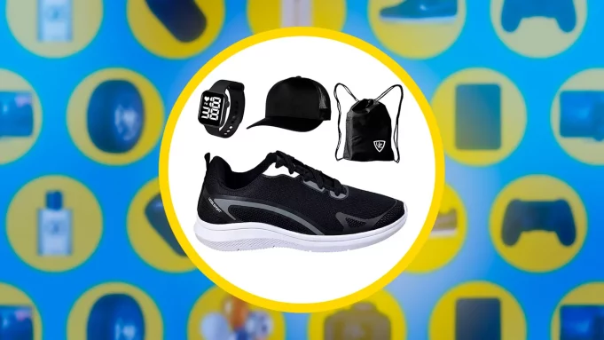 Kit com Tênis Esportivo, Relógio, Mochila e Boné