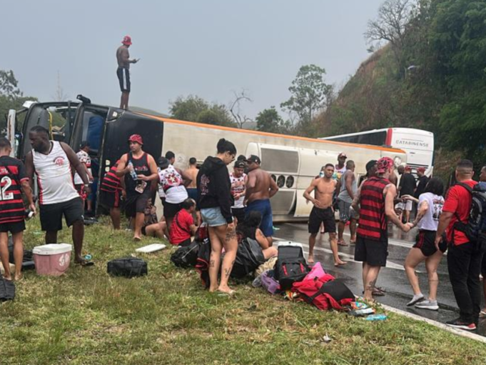 Um ônibus com torcedores do Flamengo tombou na rodovia Presidente Dutra, em Barra Mansa (RJ), na tarde de segunda-feira (27 de outubro), e deixou 16 feridos. A Polícia Rodoviária Federal investiga as causas do acidente e informou...
