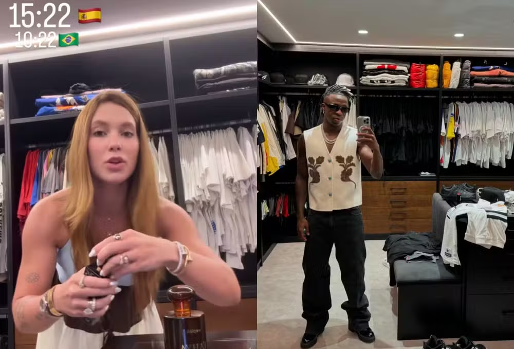 A influenciadora Virginia Fonseca embarcou, pela terceira vez em menos de um mês, rumo a Madri, na Espanha. Nesta quarta-feira (01), ela publicou vídeos em que aparece em um closet com roupas masculinas, cenário identificado por internautas como parte da residência de Vinícius Júnior.